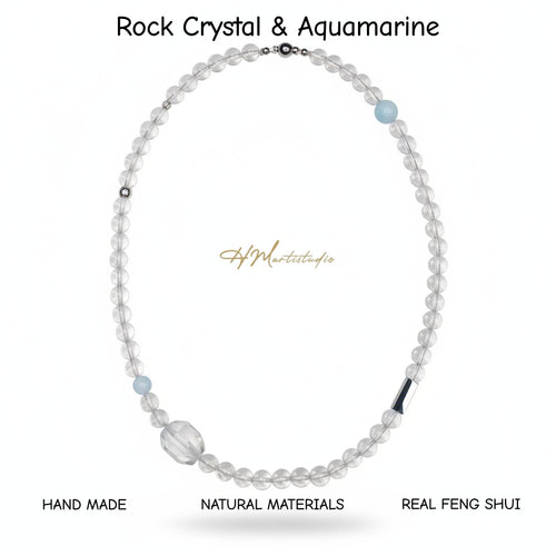 Freeform Rock Crystal Quartz Aquamarine Magnetic Necklace